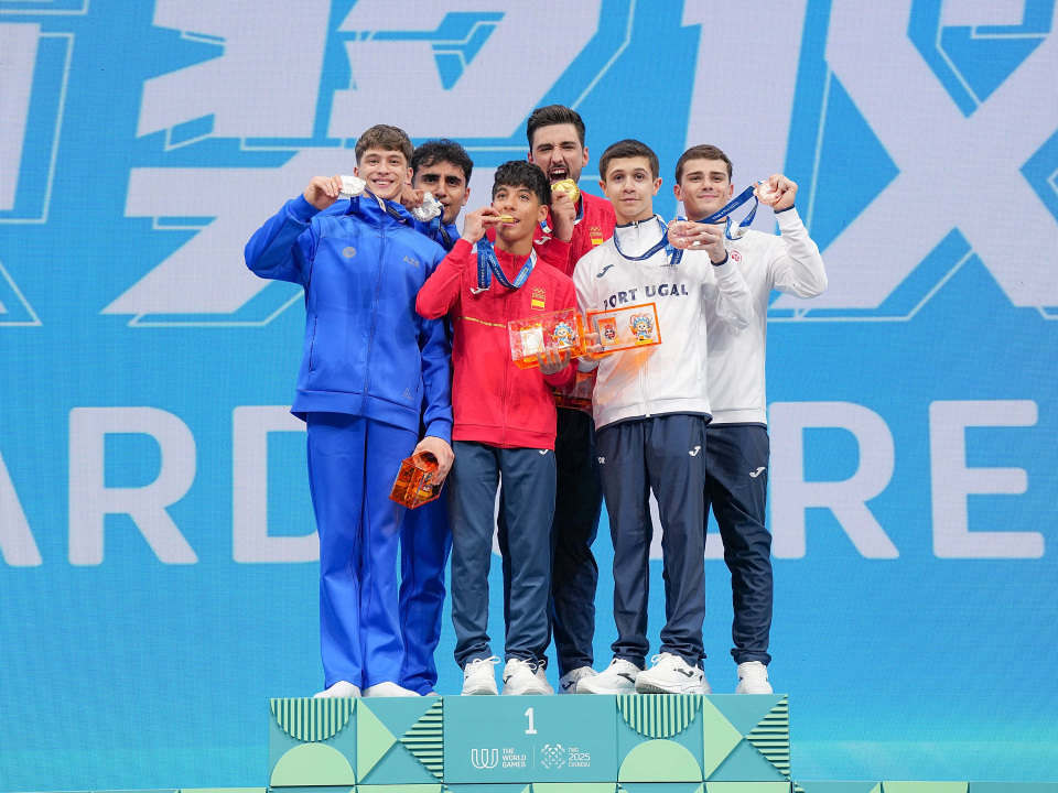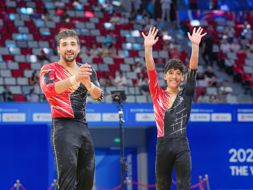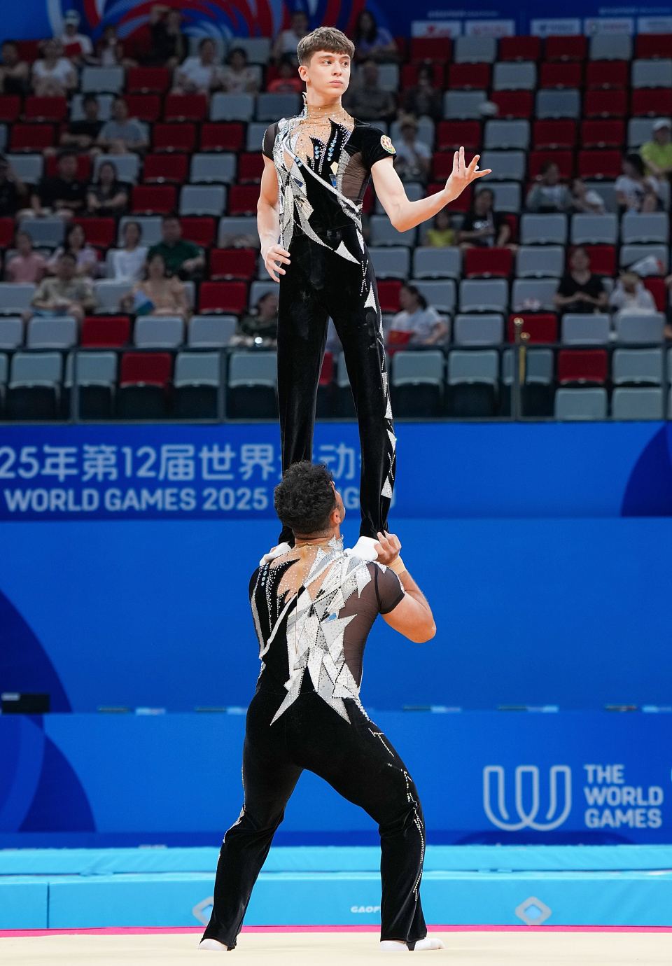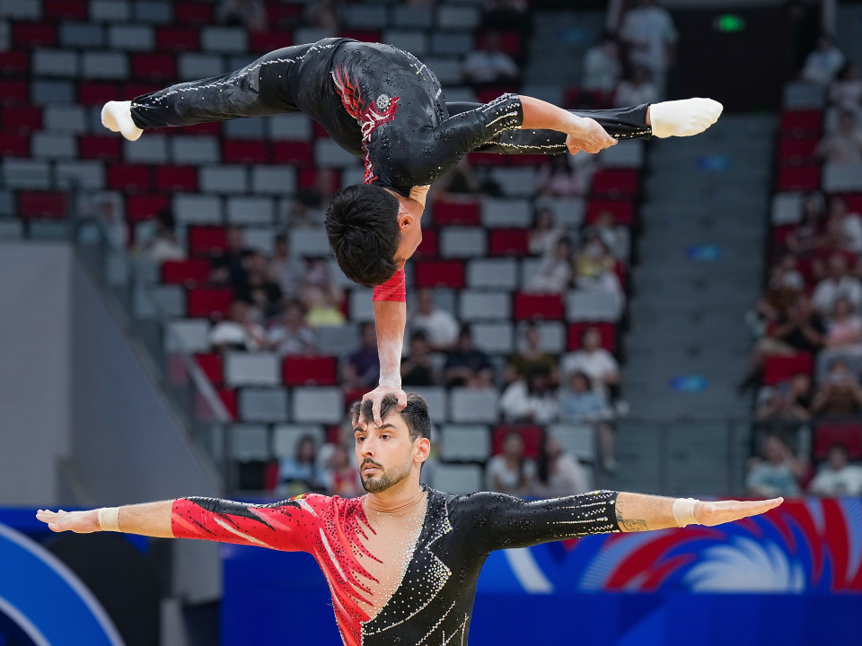 当日,2025年成都世运会技巧男子双人决赛举行。